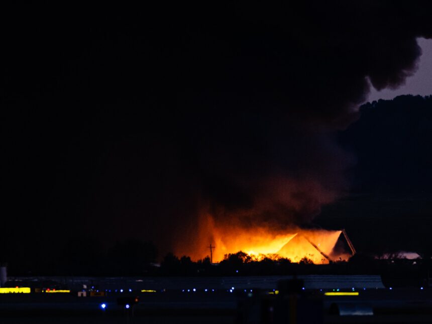 Smoke and flames rise as a UPS cargo plane crashes in Louisville, Kentucky [Reuters]
