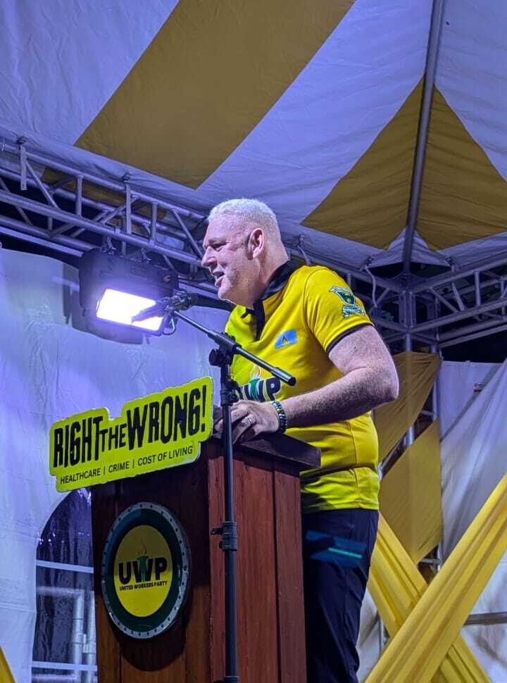 The United Workers Party (UWP) leader was speaking at a public meeting in Anse La Raye, where he was joined by the full slate of UWP candidates in front of enthusiastic supporters.
